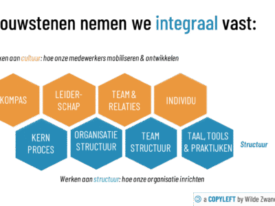Wat ons onderscheidt is dat we altijd drie brillen opzetten om structuur, cultuur en het systemische duurzaam met elkaar te verbinden. We creëren impact door persoon en context te beïnvloeden.