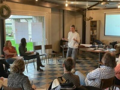 We kozen er voor om het gidsen van leidinggevenden rond hun eigen leiderschap met 2 te begeleiden. Waar Joost de rode draad is in het organisatie traject, zorgde Lynn voor de rode draad bij het invullen van leiderschap. Op regelmatige tijdstippen gingen leidinggevenden, Lynn & Joost ook samen op pad om continu één samenhangend verhaal te brengen én om spanningen die ontstonden ook “in het moment” te kunnen vastnemen. Op die manier groeide er een veilige context om met elkaar in dialoog te gaan rond de persoonlijke worstelingen die een leidinggevende ervaarde.